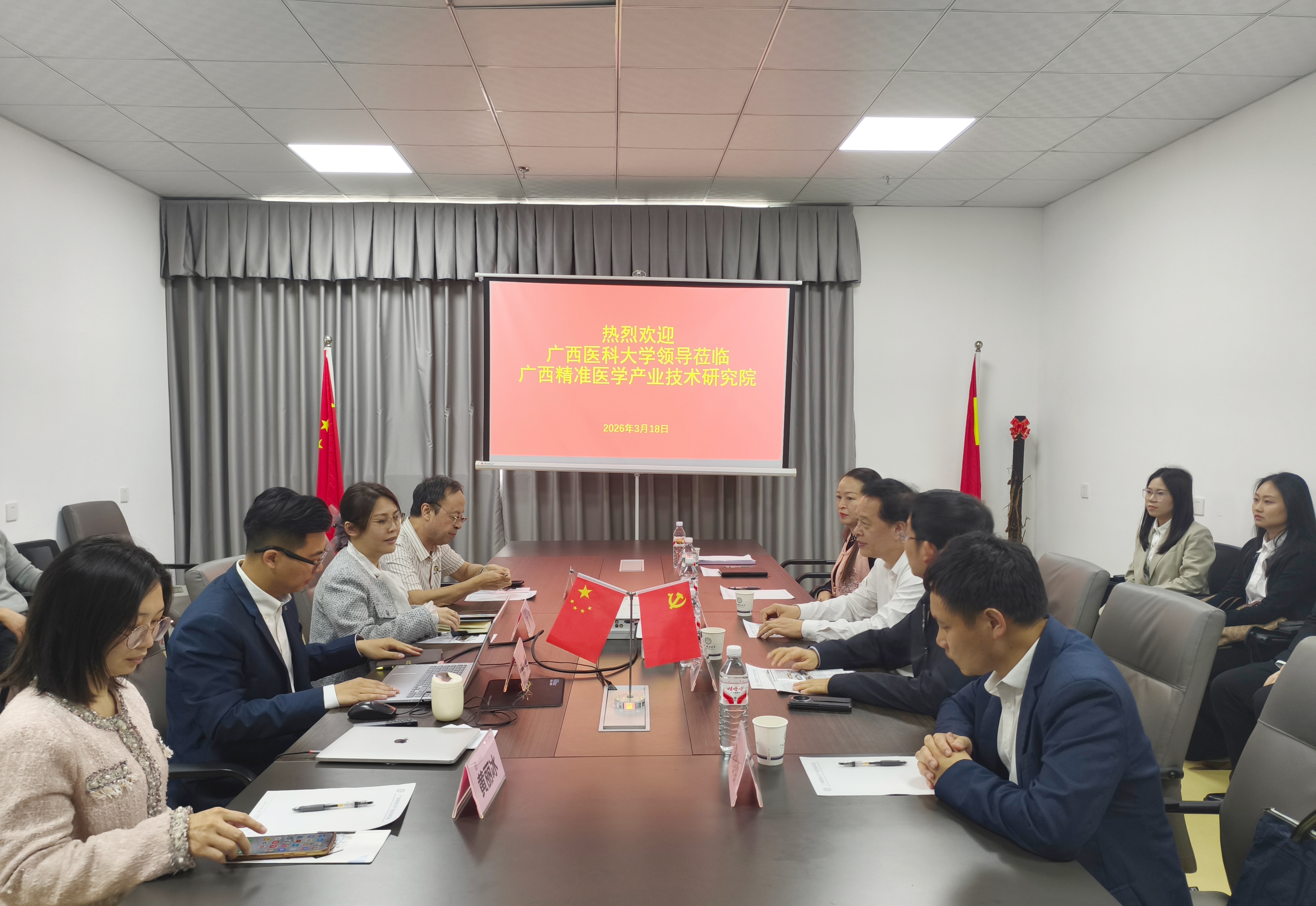 • 为扎实推进访企拓岗促就业工作,深化校企合作协同育人,精准对接行业人才需求,3月18日上午,dg百家乐试玩 副校长廖红兵带队,dg百家乐试玩 党委书记邹云锋、副书记唐凤、副院长蒋俊俊及辅导员陶旭娜一行,携2026届研究生毕业生代表赴广西精准医学产业技术研究院开展走访调研,并与研究院相关负责人座谈交流。
